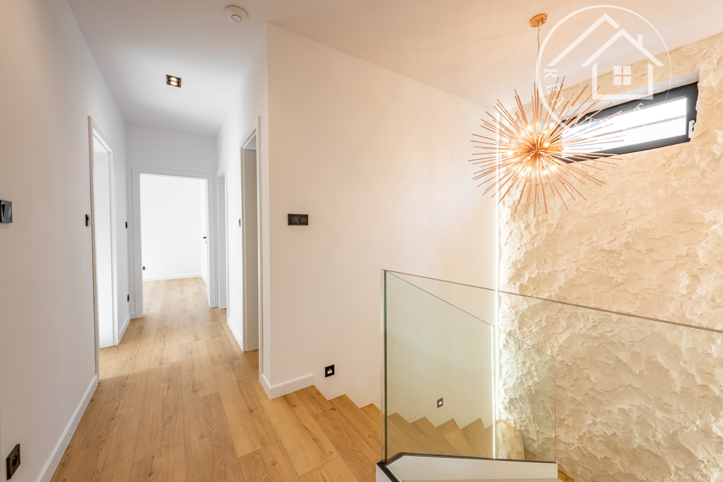 2NP:schodisko, chodba,šatník,2X izba, kúpeľňa, WC, spálňa s kúpeľnou, terasa.